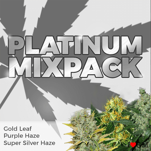 There is good marijuana, and there is great marijuana. Step it up a notch with the platinum Mix Pack. These plants can produce some of the skunkiest, most potent high you can grow. Prepare to enter a haze of platinum proportions. The platinum Mix Pack includes Purple Haze, Super Silver Haze, and Gold Leaf by Robert Bergman feminized seeds.